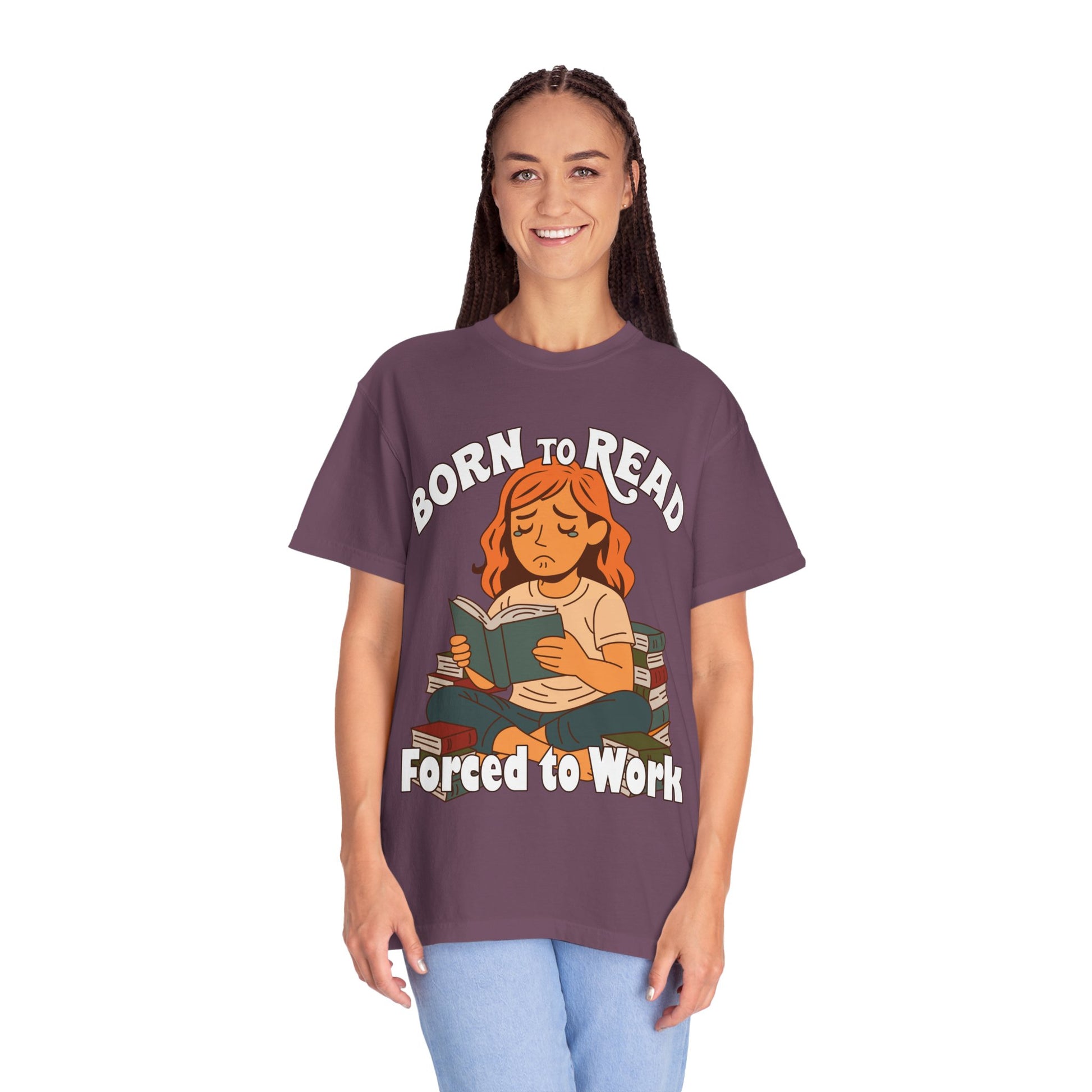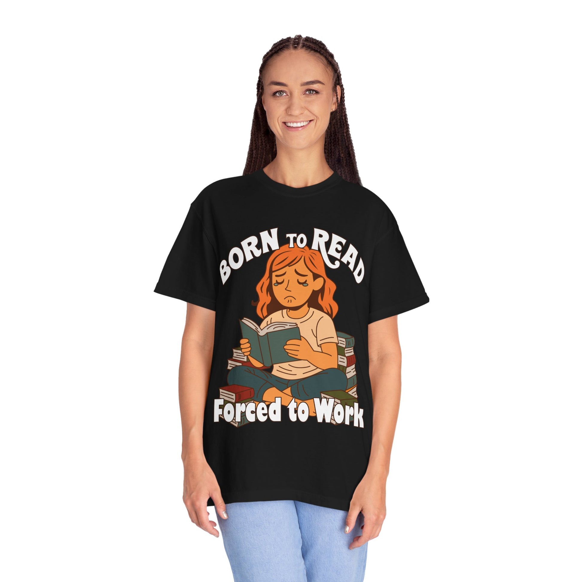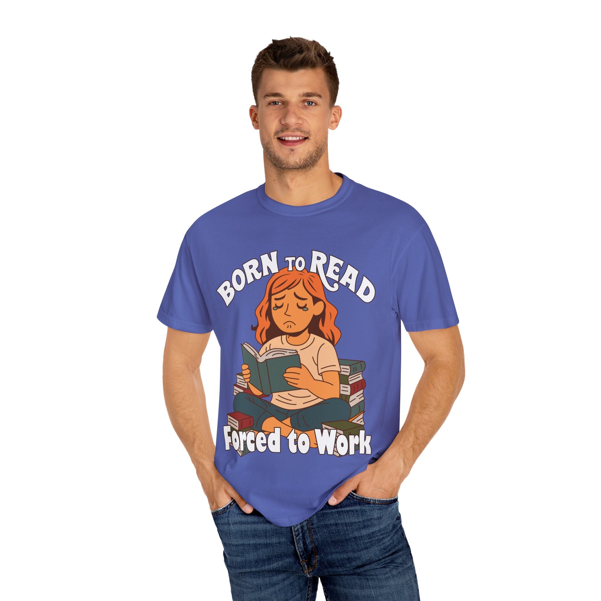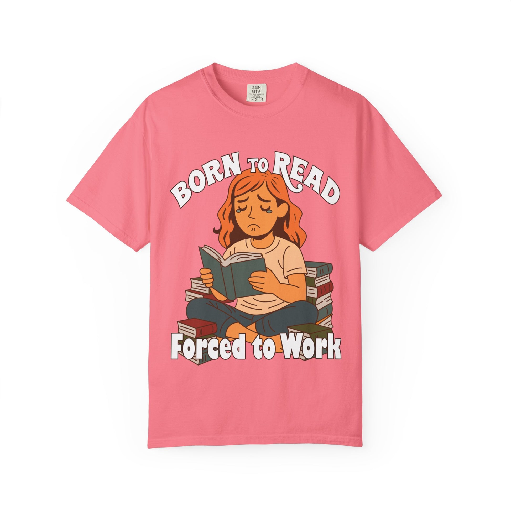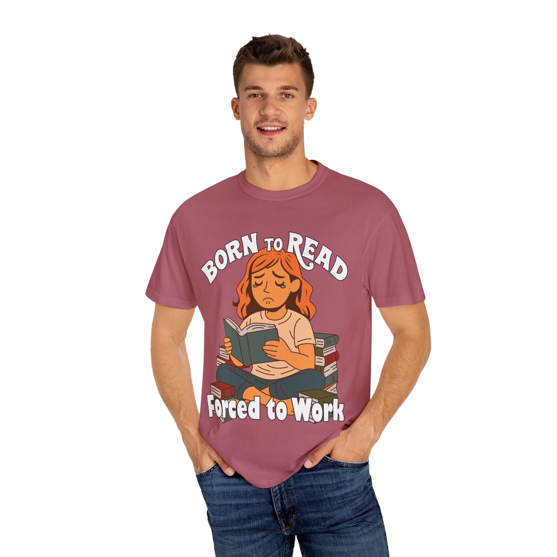 This T-shirt with a meme design 'Born to Read, Forced to Work' featuring a crying women is perfect for book lovers with a sense of humor. It gives off a funny and relatable vibe, making it a great casual wear for those who enjoy reading. Ideal for bookworms and literature enthusiasts, this T-shirt is relevant for book-related holidays and events.
