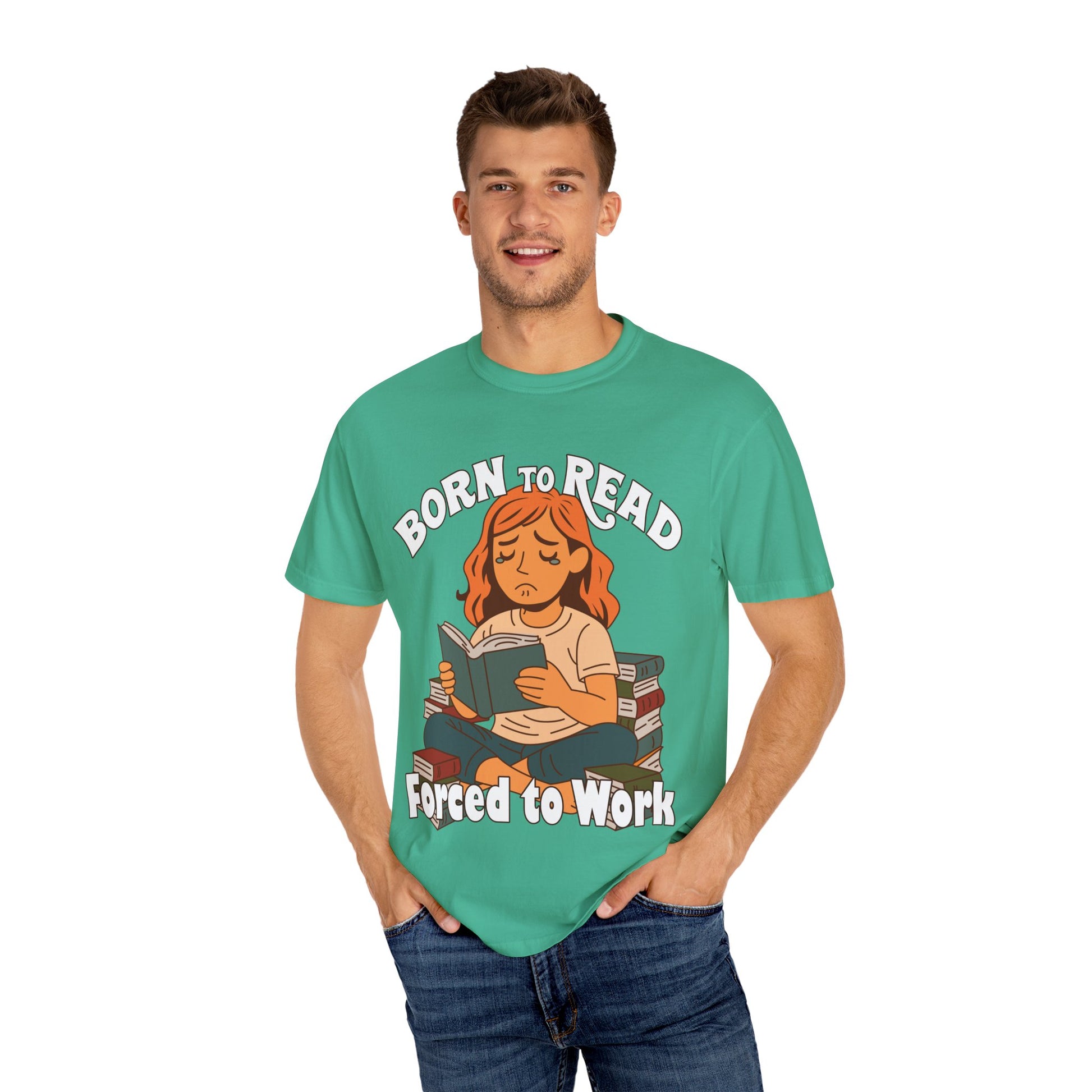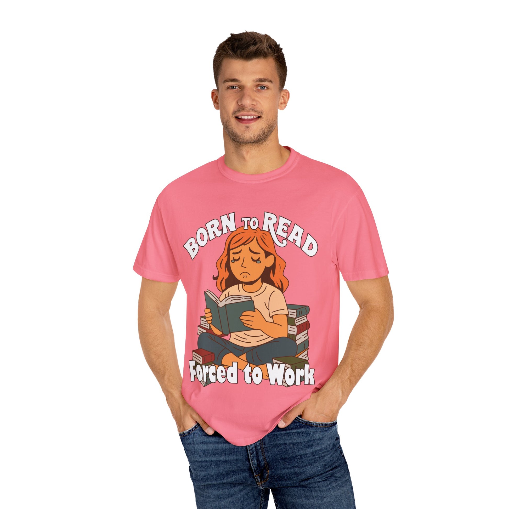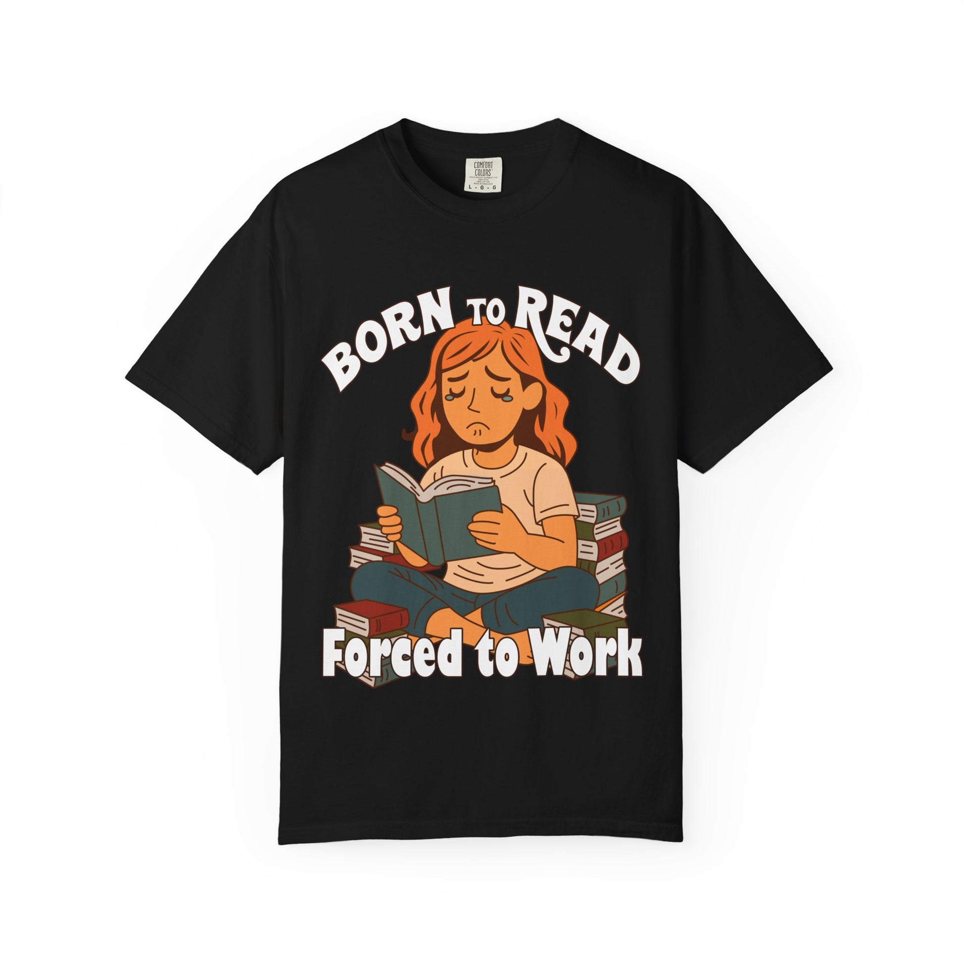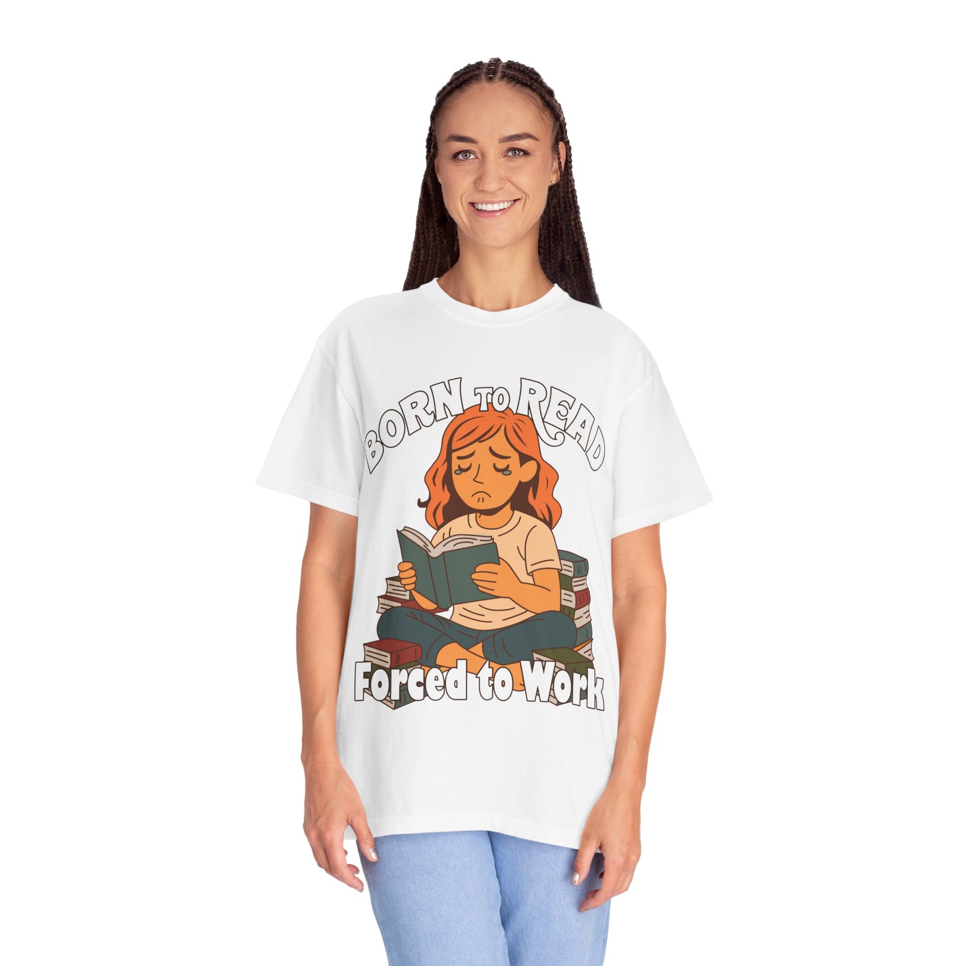 This T-shirt with a meme design 'Born to Read, Forced to Work' featuring a crying women is perfect for book lovers with a sense of humor. It gives off a funny and relatable vibe, making it a great casual wear for those who enjoy reading. Ideal for bookworms and literature enthusiasts, this T-shirt is relevant for book-related holidays and events.