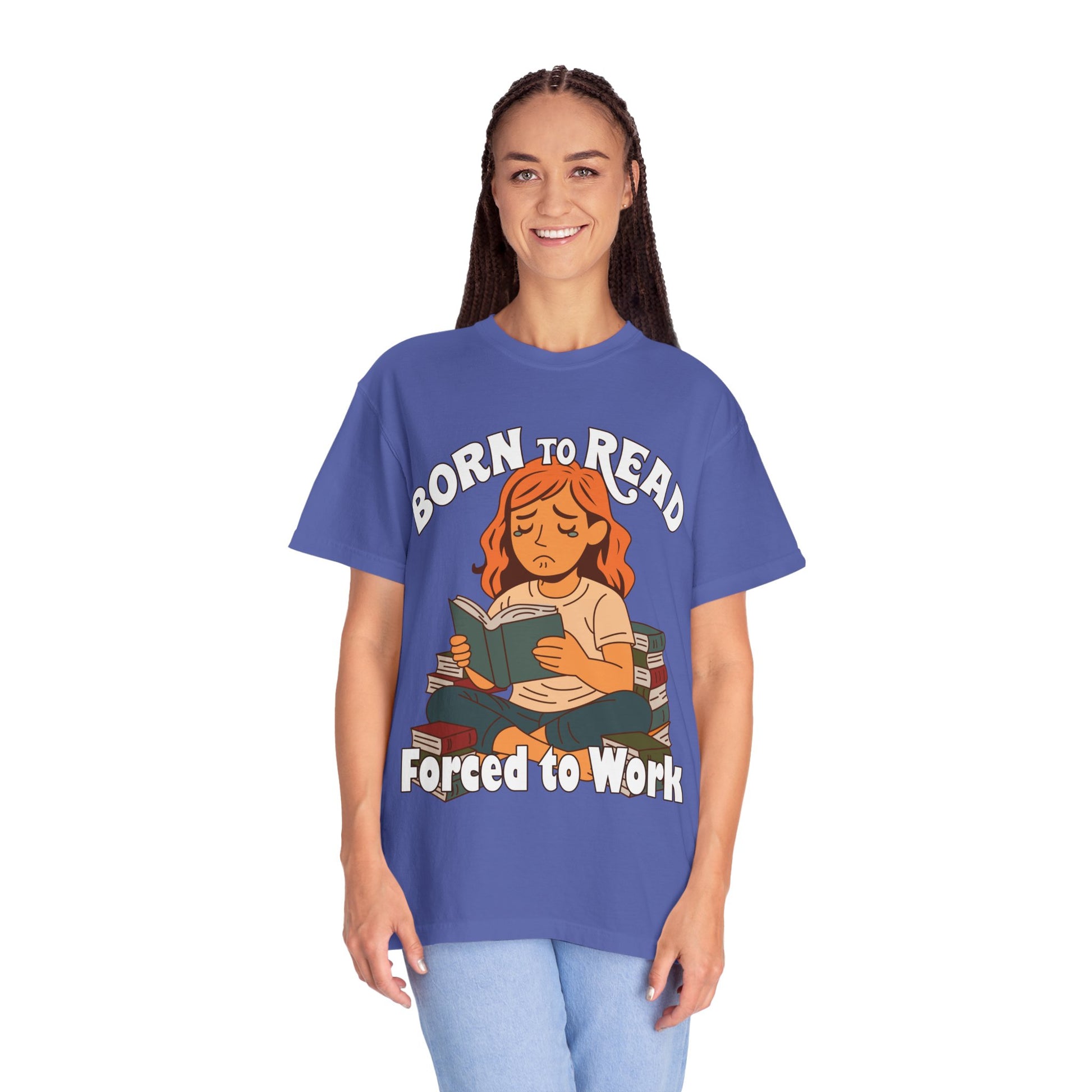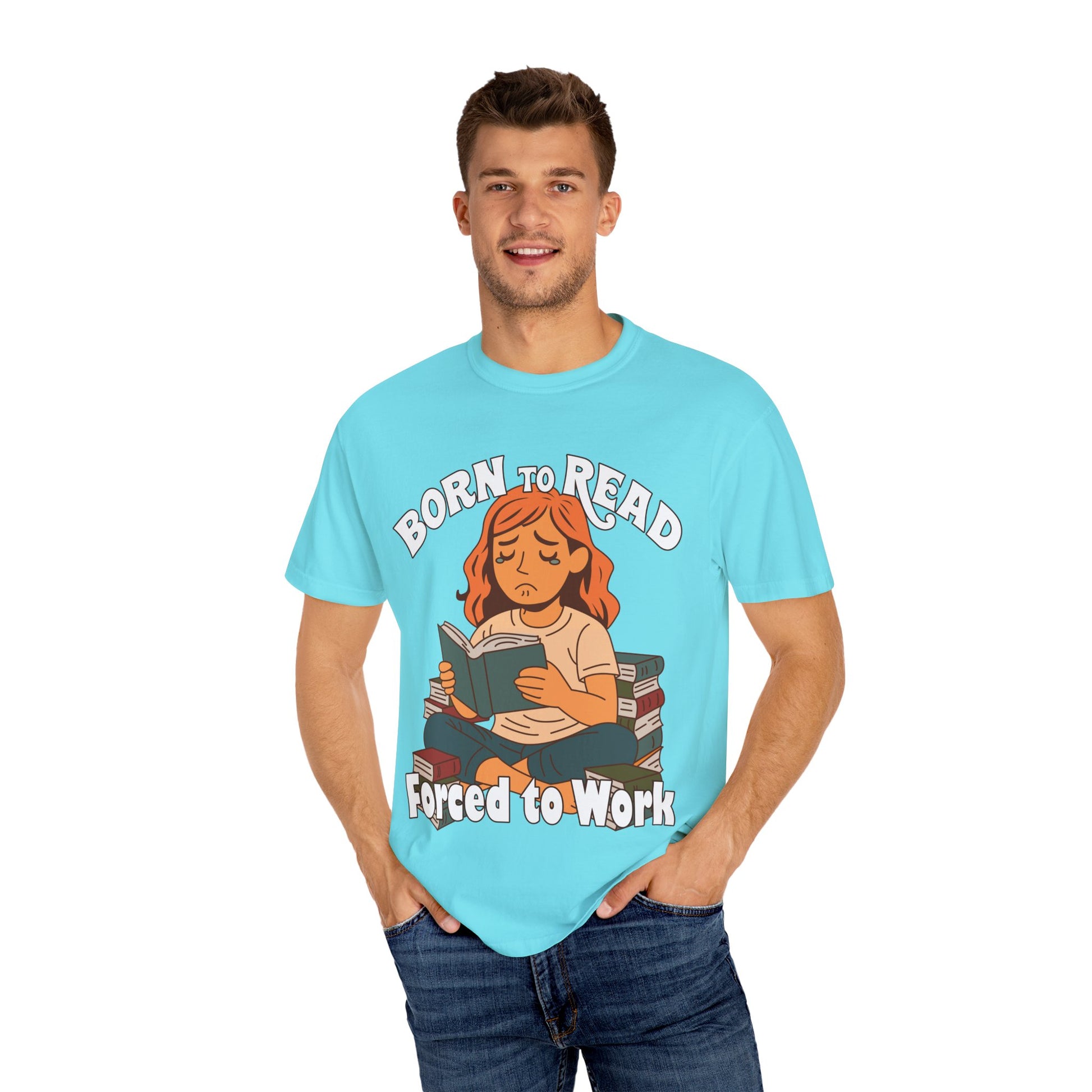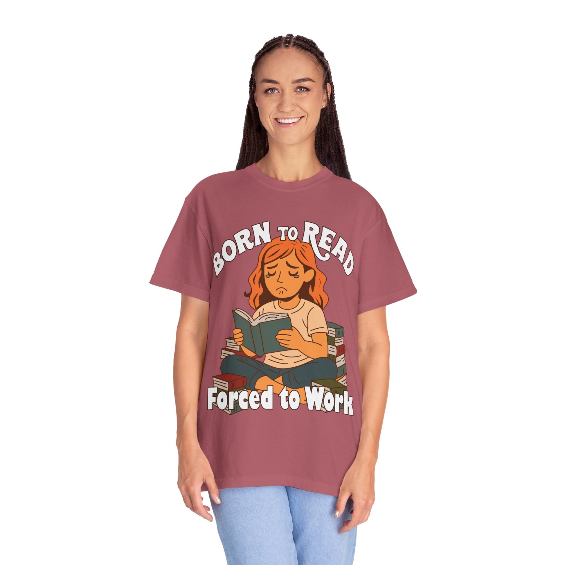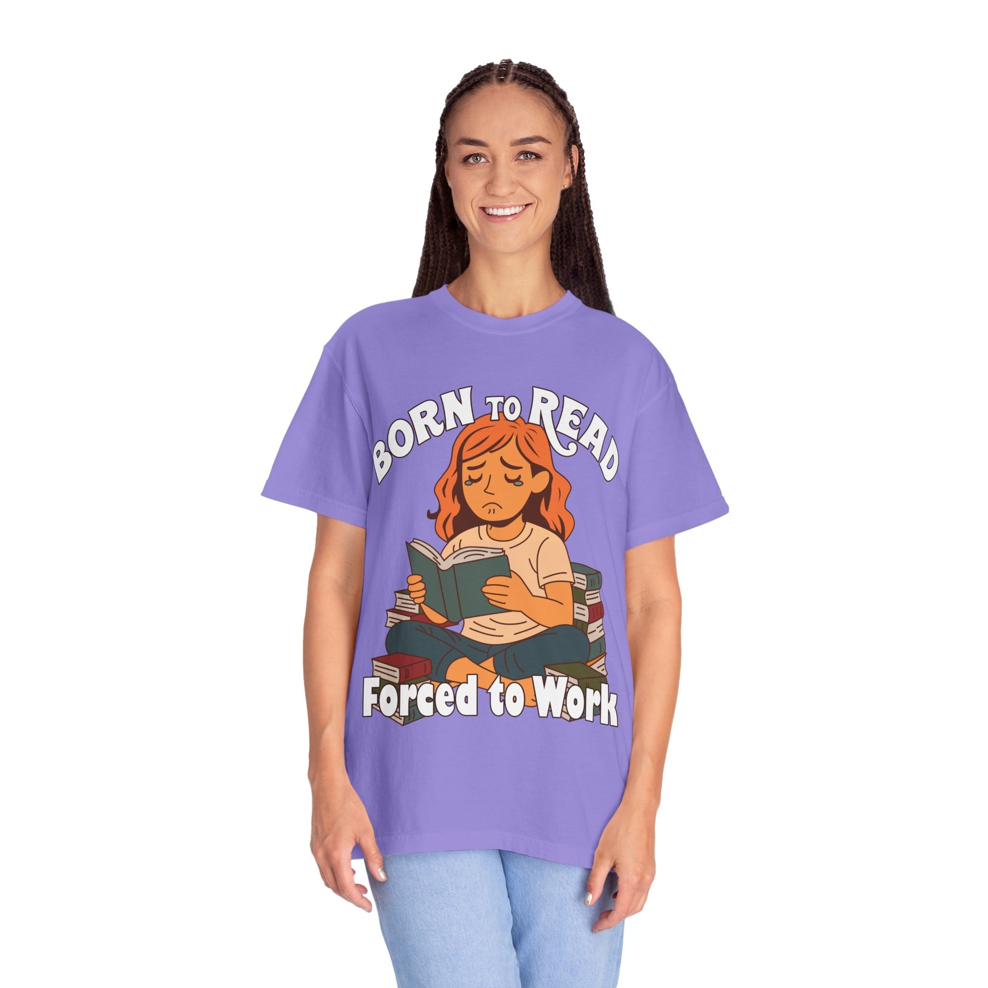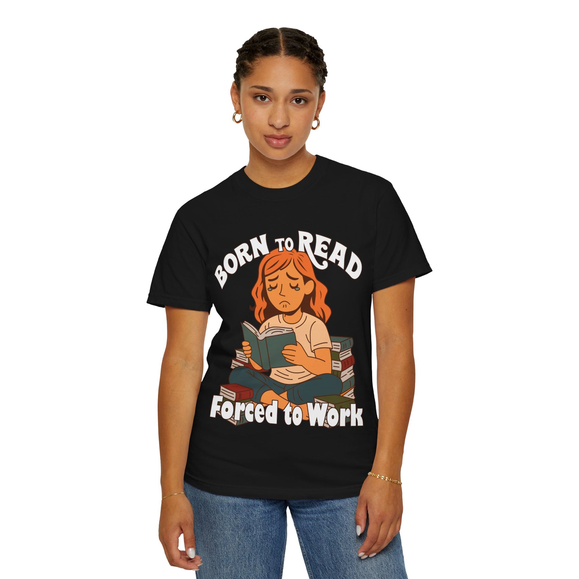 This T-shirt with a meme design 'Born to Read, Forced to Work' featuring a crying women is perfect for book lovers with a sense of humor. It gives off a funny and relatable vibe, making it a great casual wear for those who enjoy reading. Ideal for bookworms and literature enthusiasts, this T-shirt is relevant for book-related holidays and events.