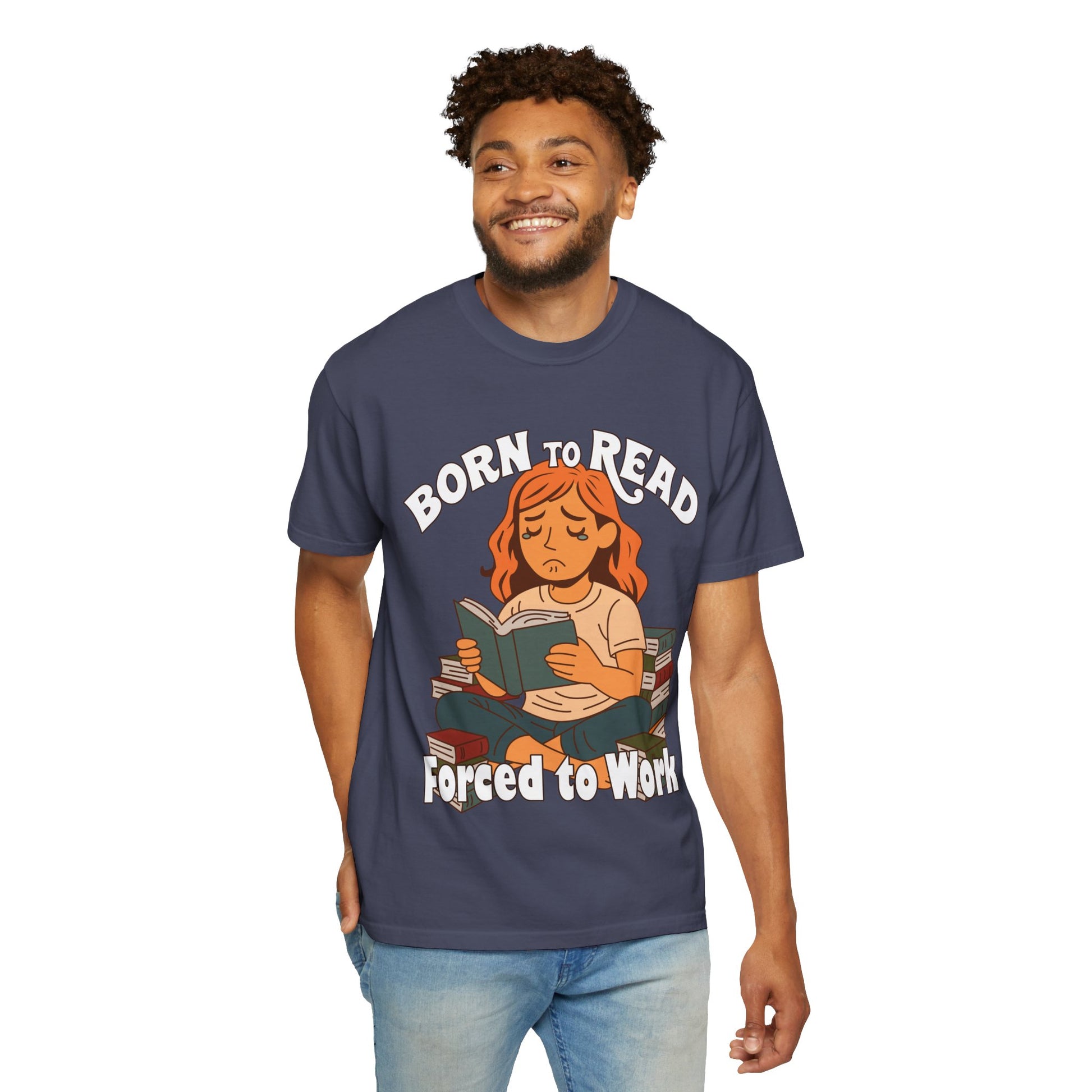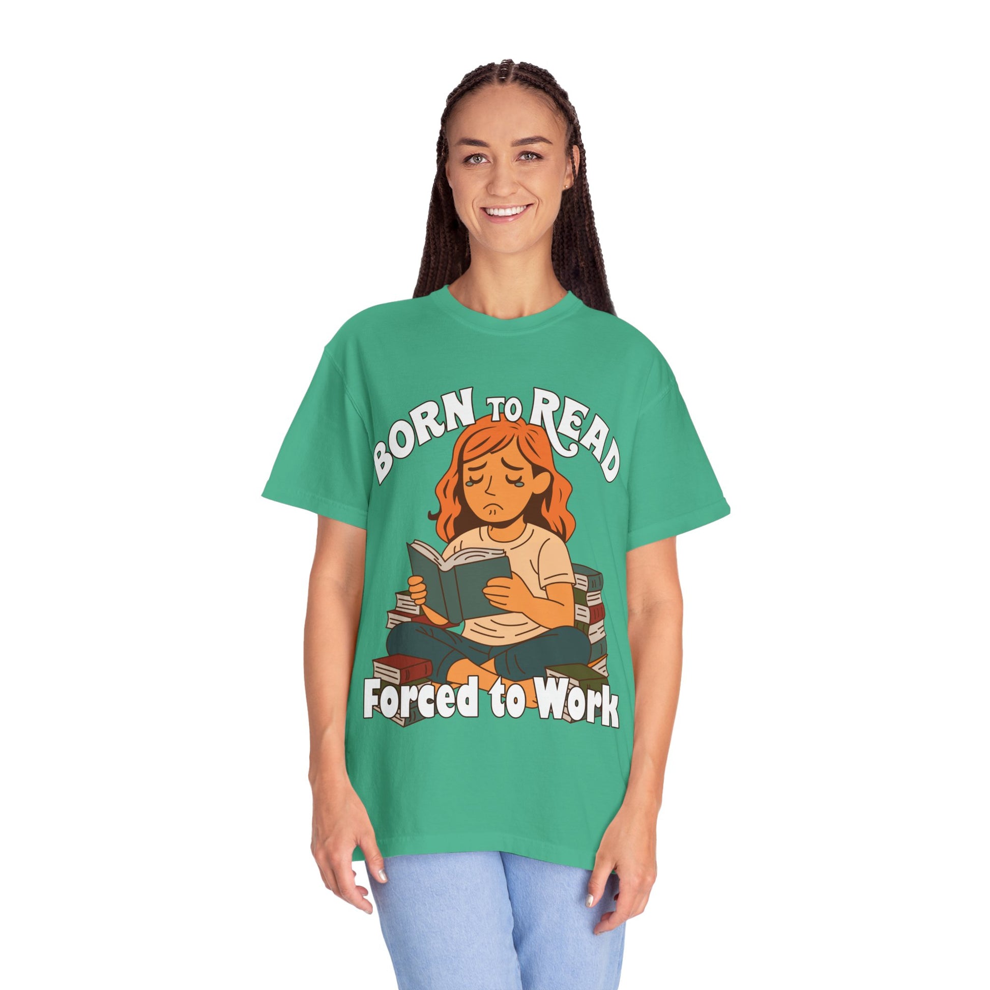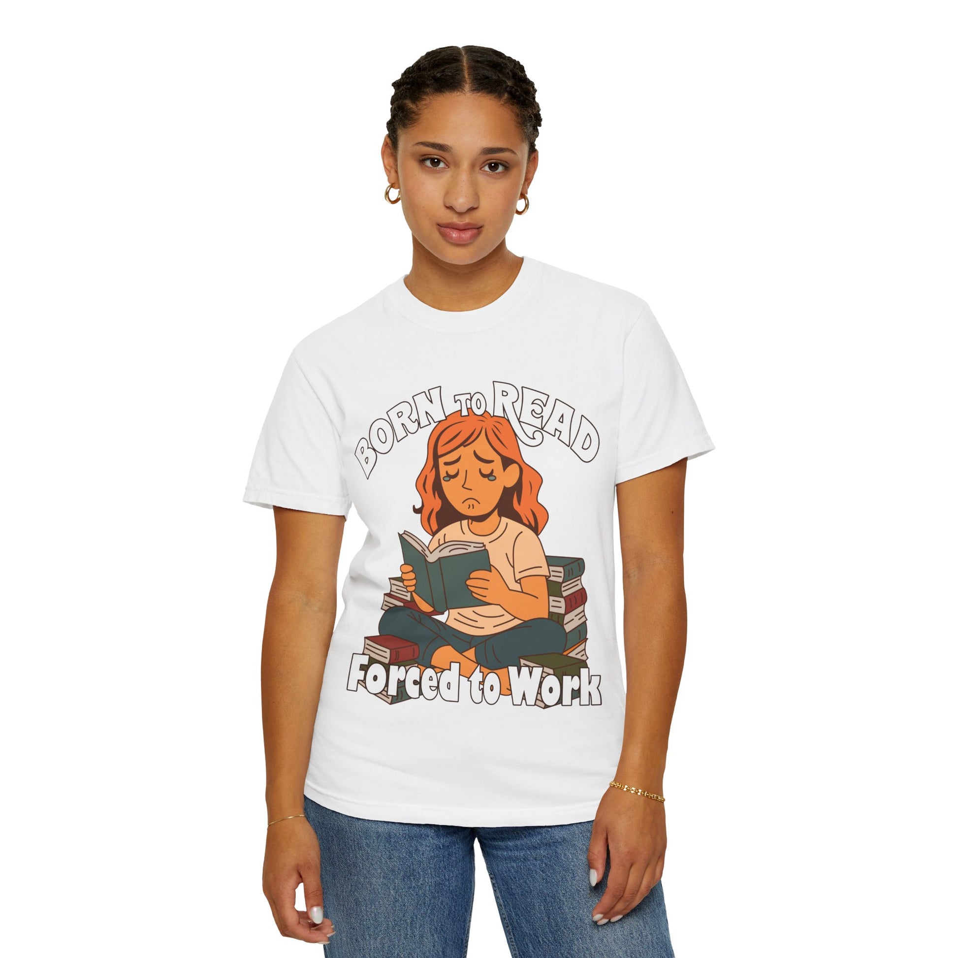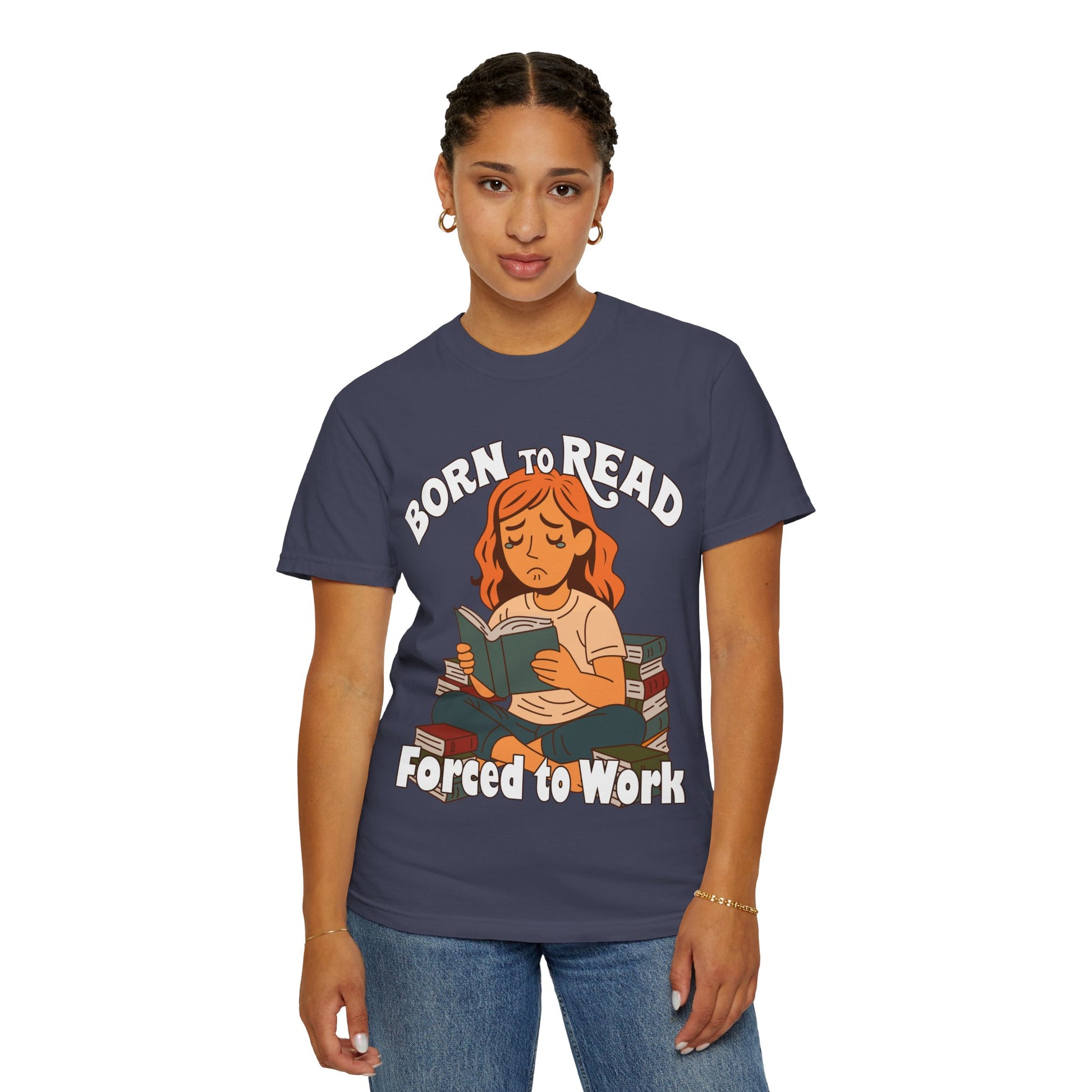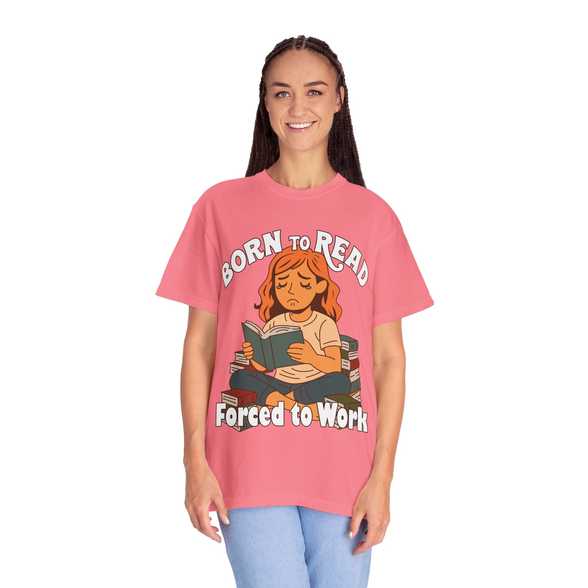 This T-shirt with a meme design 'Born to Read, Forced to Work' featuring a crying women is perfect for book lovers with a sense of humor. It gives off a funny and relatable vibe, making it a great casual wear for those who enjoy reading. Ideal for bookworms and literature enthusiasts, this T-shirt is relevant for book-related holidays and events.