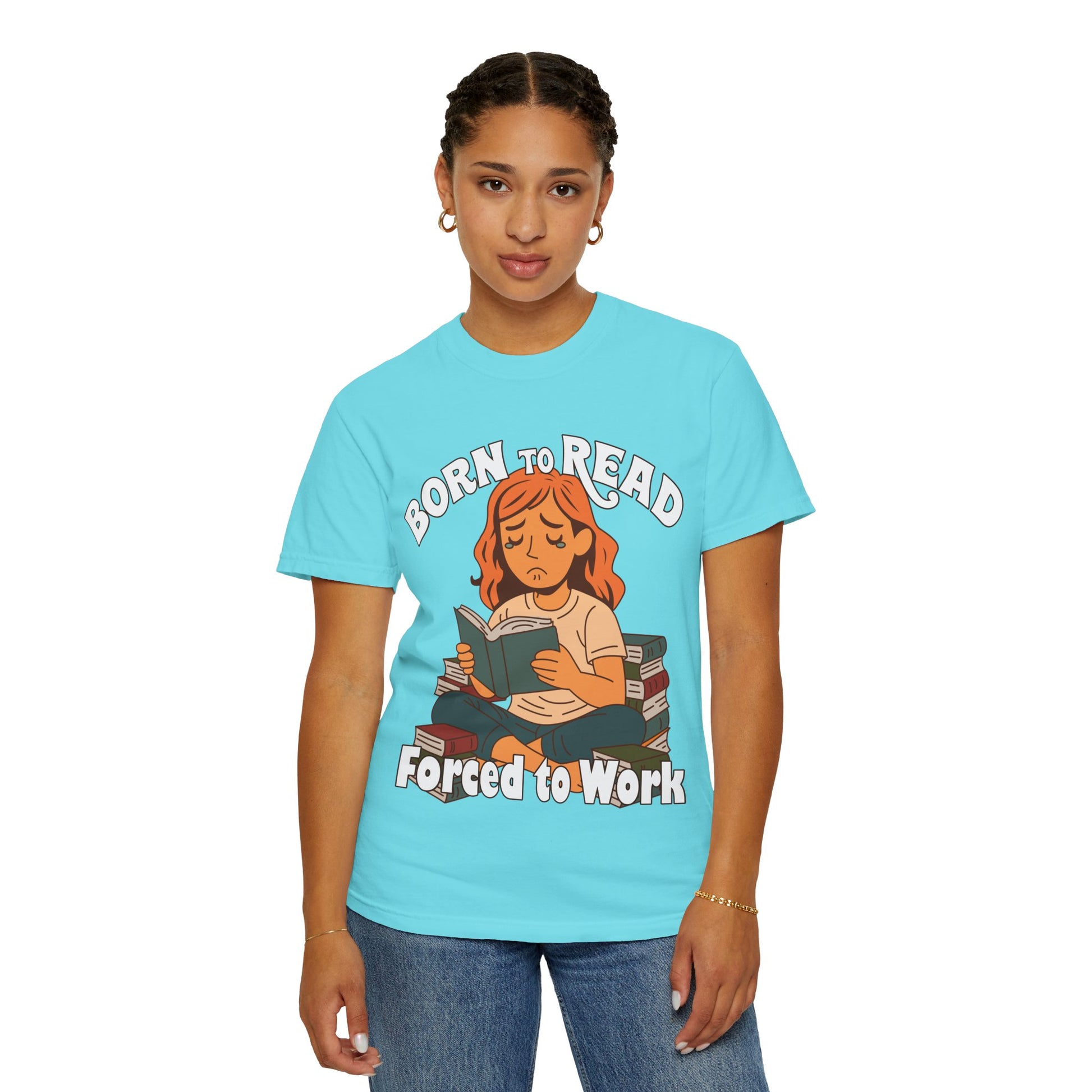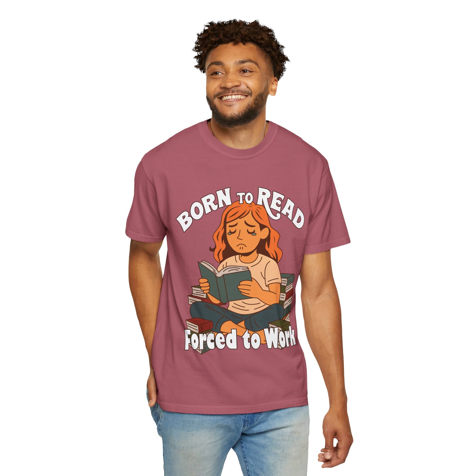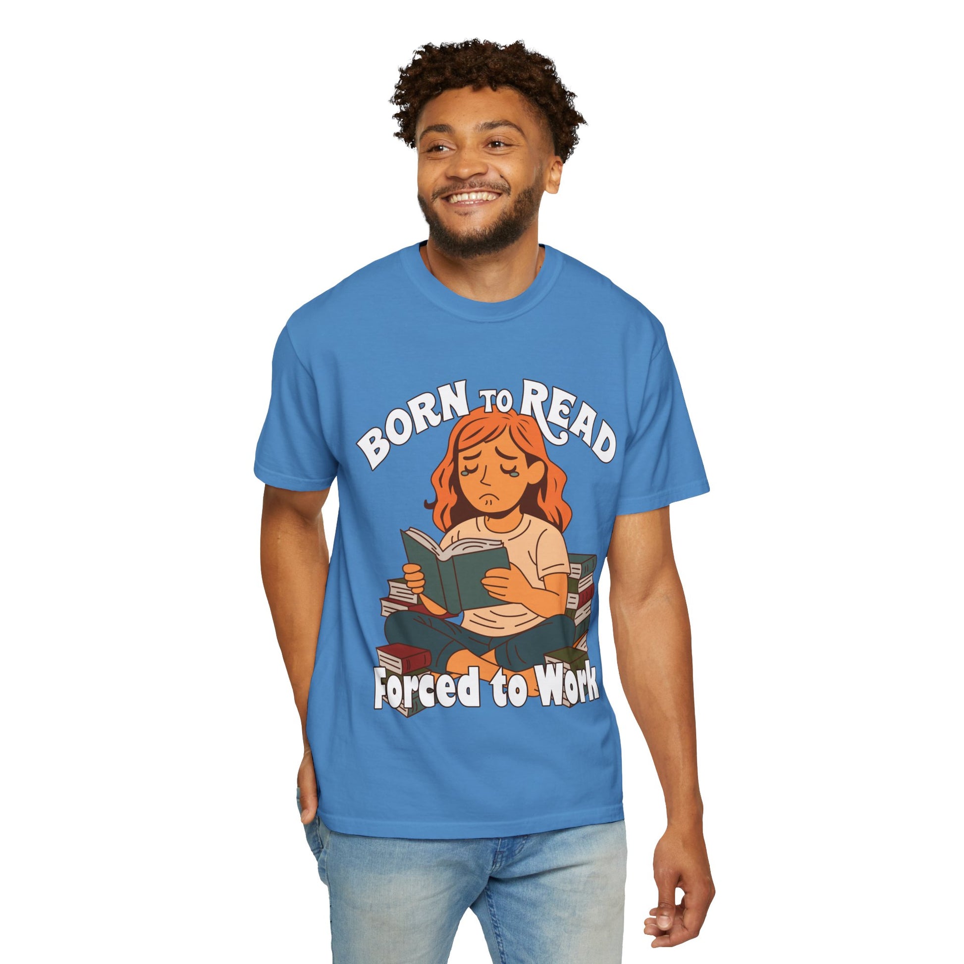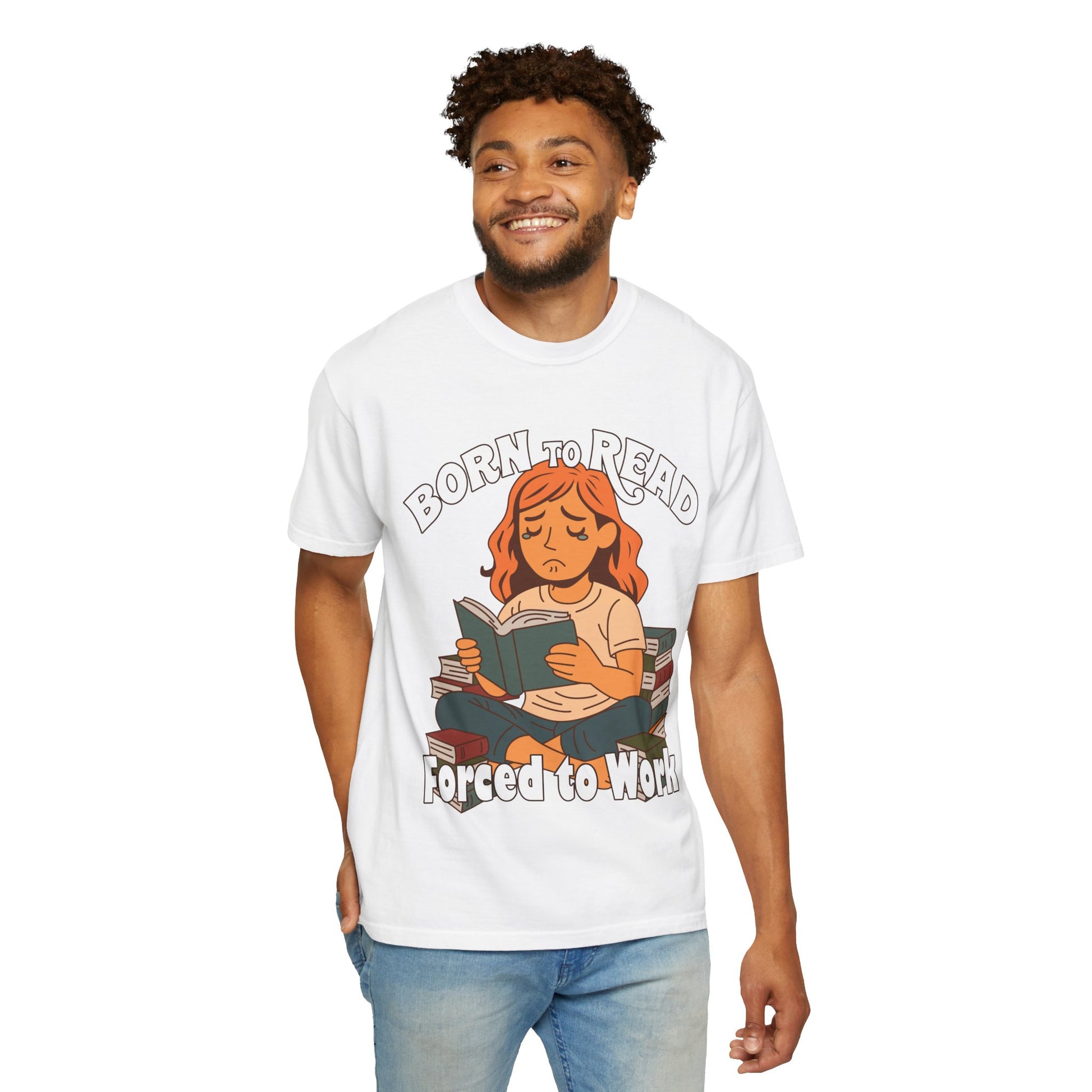 This T-shirt with a meme design 'Born to Read, Forced to Work' featuring a crying women is perfect for book lovers with a sense of humor. It gives off a funny and relatable vibe, making it a great casual wear for those who enjoy reading. Ideal for bookworms and literature enthusiasts, this T-shirt is relevant for book-related holidays and events.
