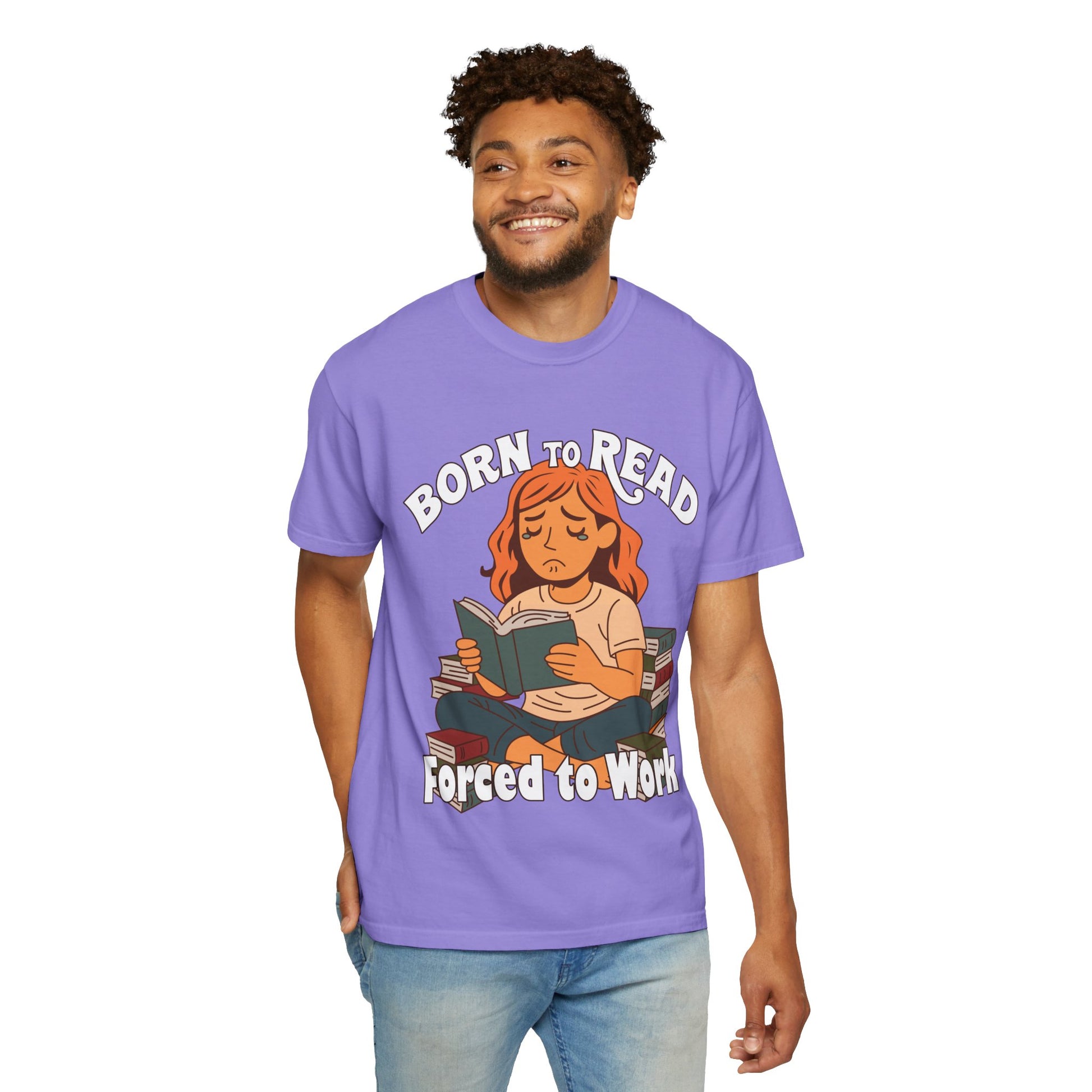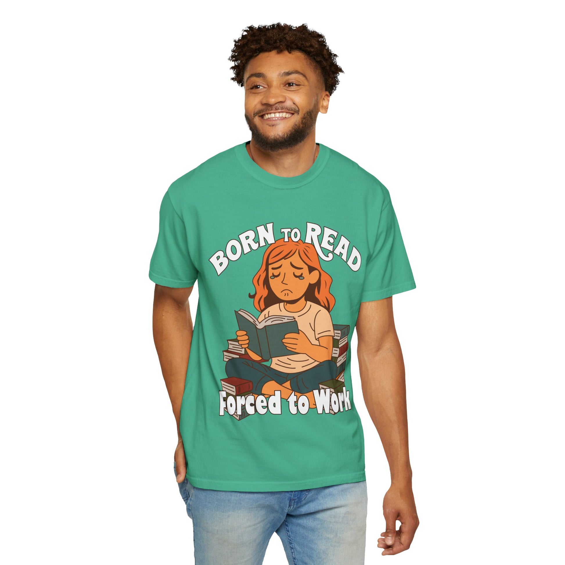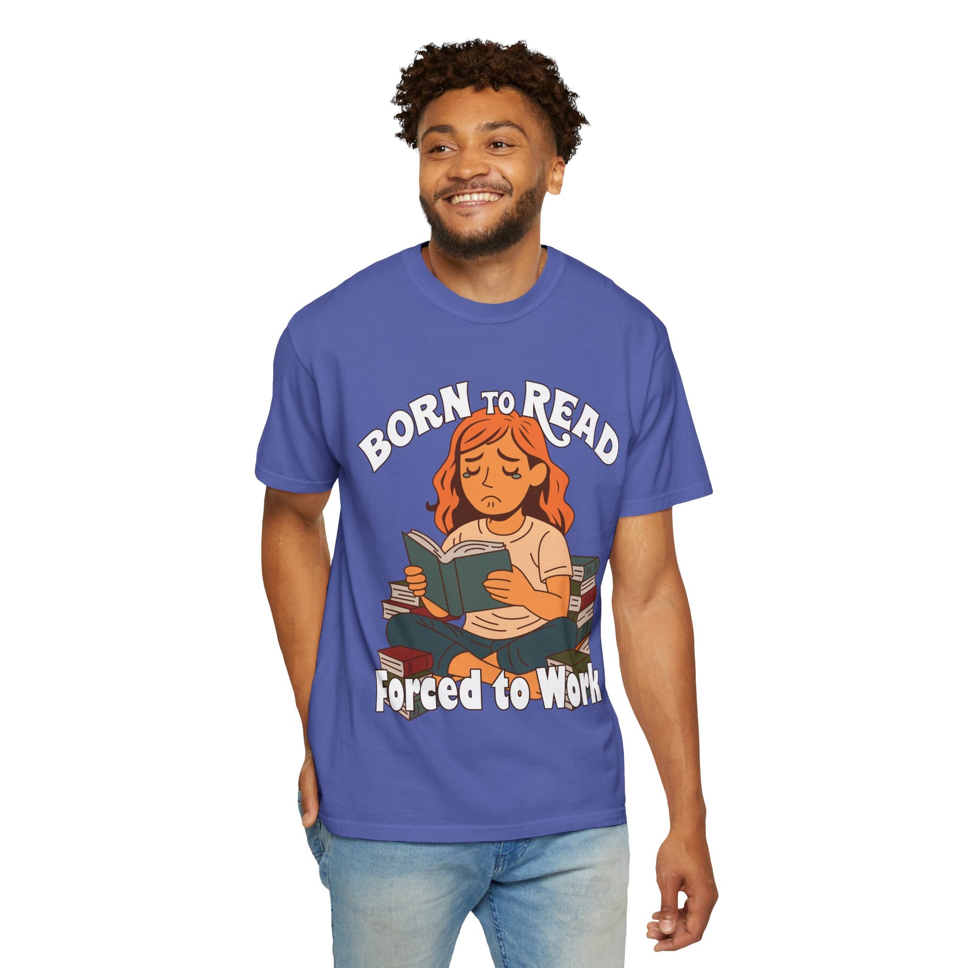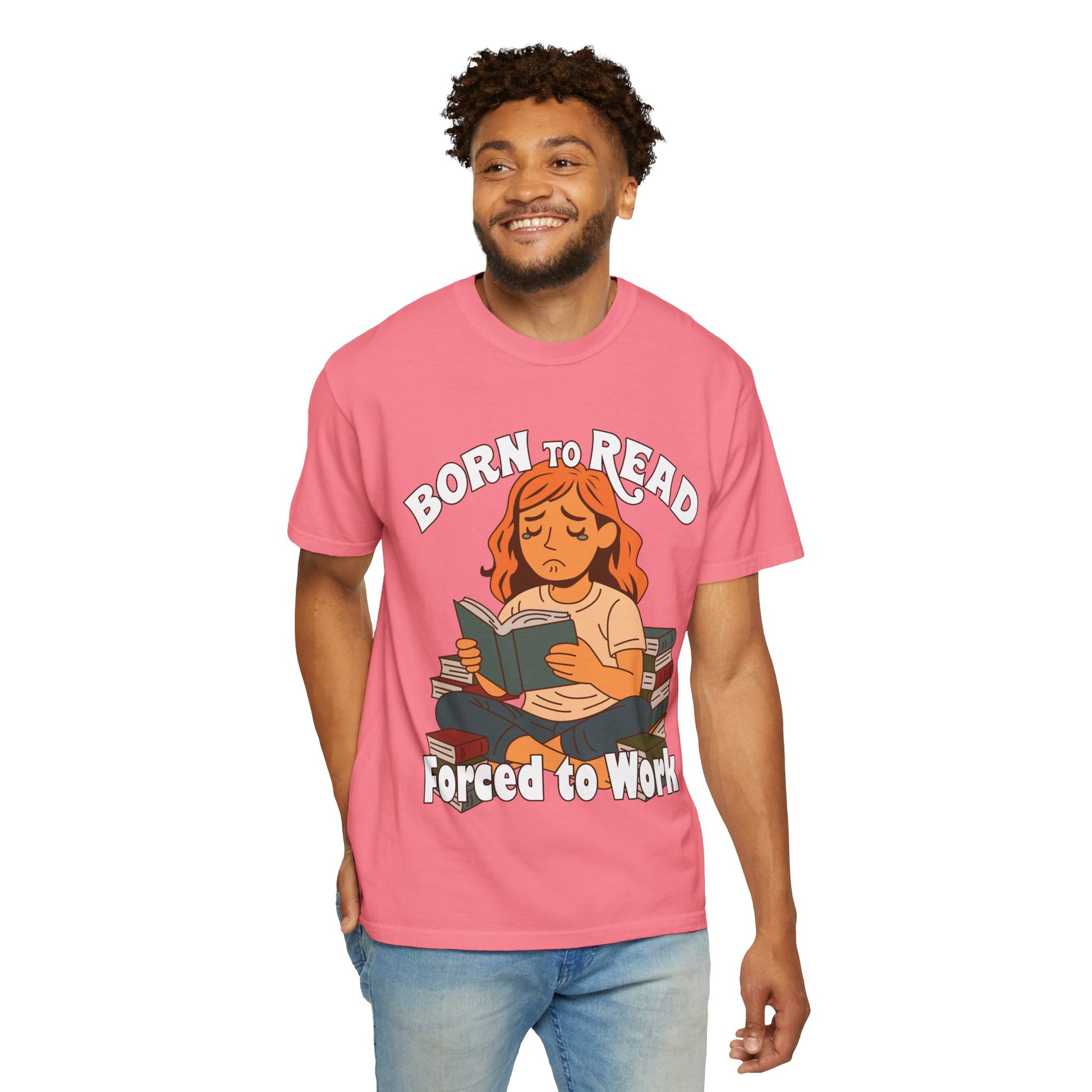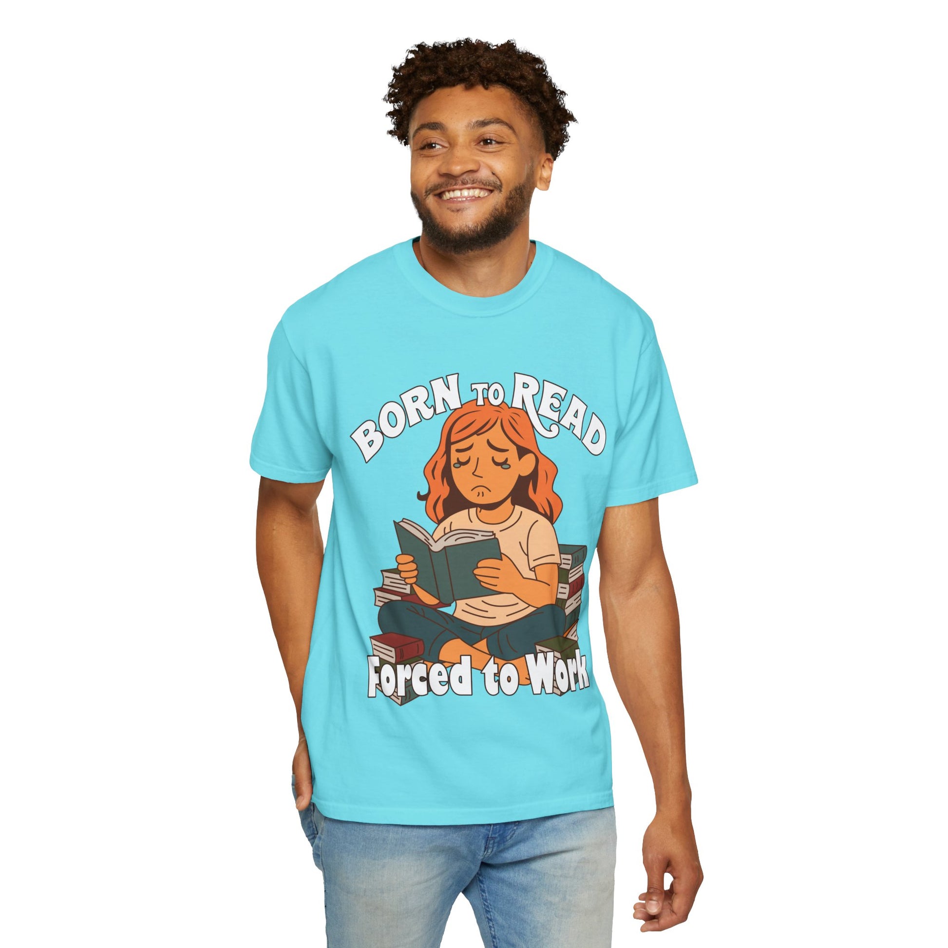 This T-shirt with a meme design 'Born to Read, Forced to Work' featuring a crying women is perfect for book lovers with a sense of humor. It gives off a funny and relatable vibe, making it a great casual wear for those who enjoy reading. Ideal for bookworms and literature enthusiasts, this T-shirt is relevant for book-related holidays and events.