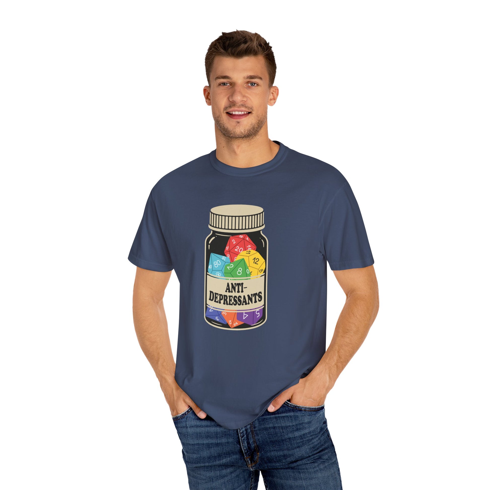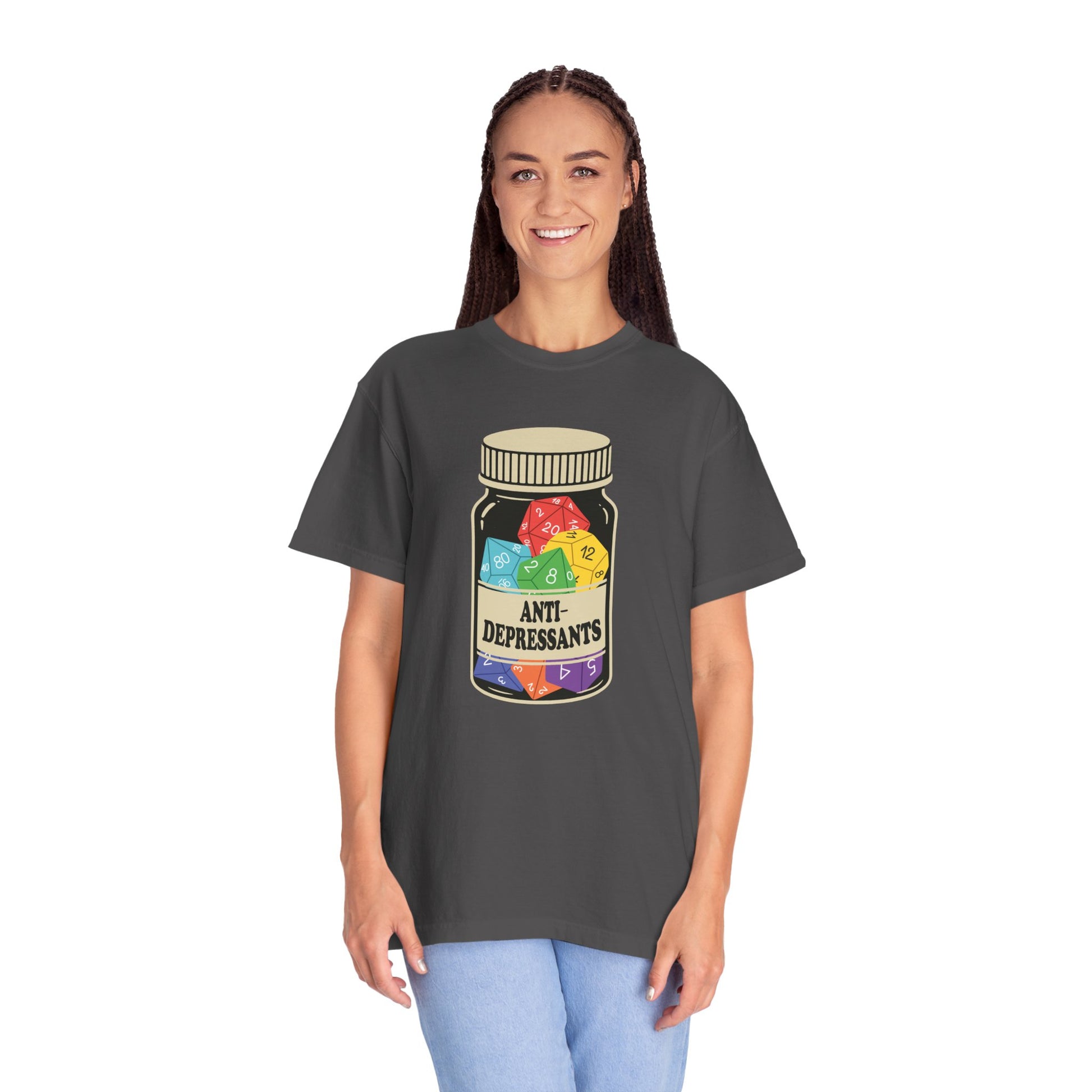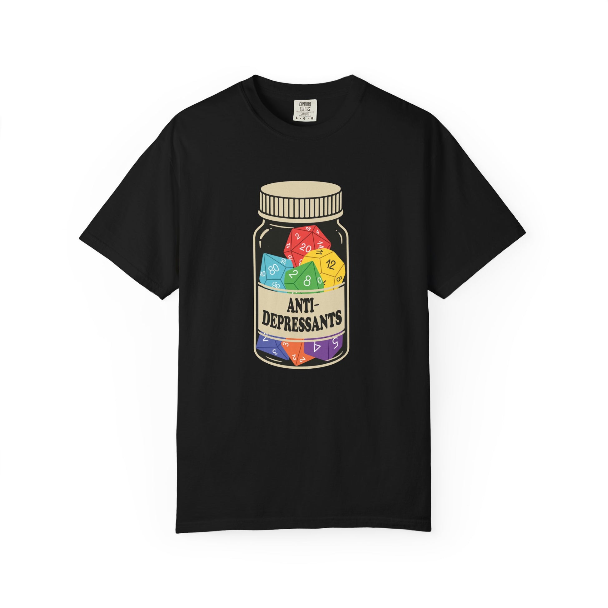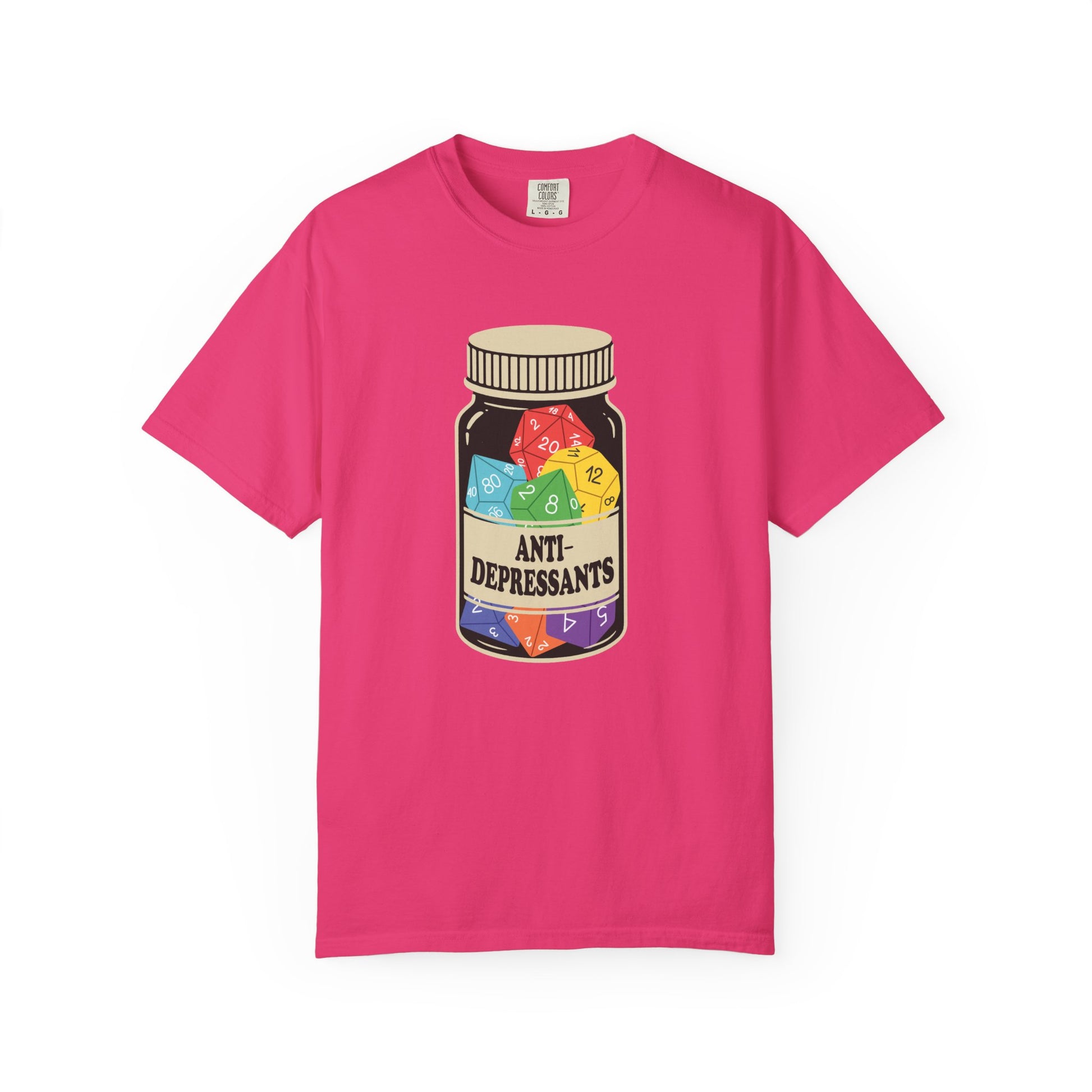 This Meme, Anti-Depressants, Dungeons and Dragons themed t-shirt is perfect for fans of DnD and dice. It gives off a fun and geeky vibe, making it a great addition to any casual outfit. Perfect for DnD enthusiasts and meme lovers alike, this shirt is ideal for wearing to game nights, conventions, or just lounging at home.