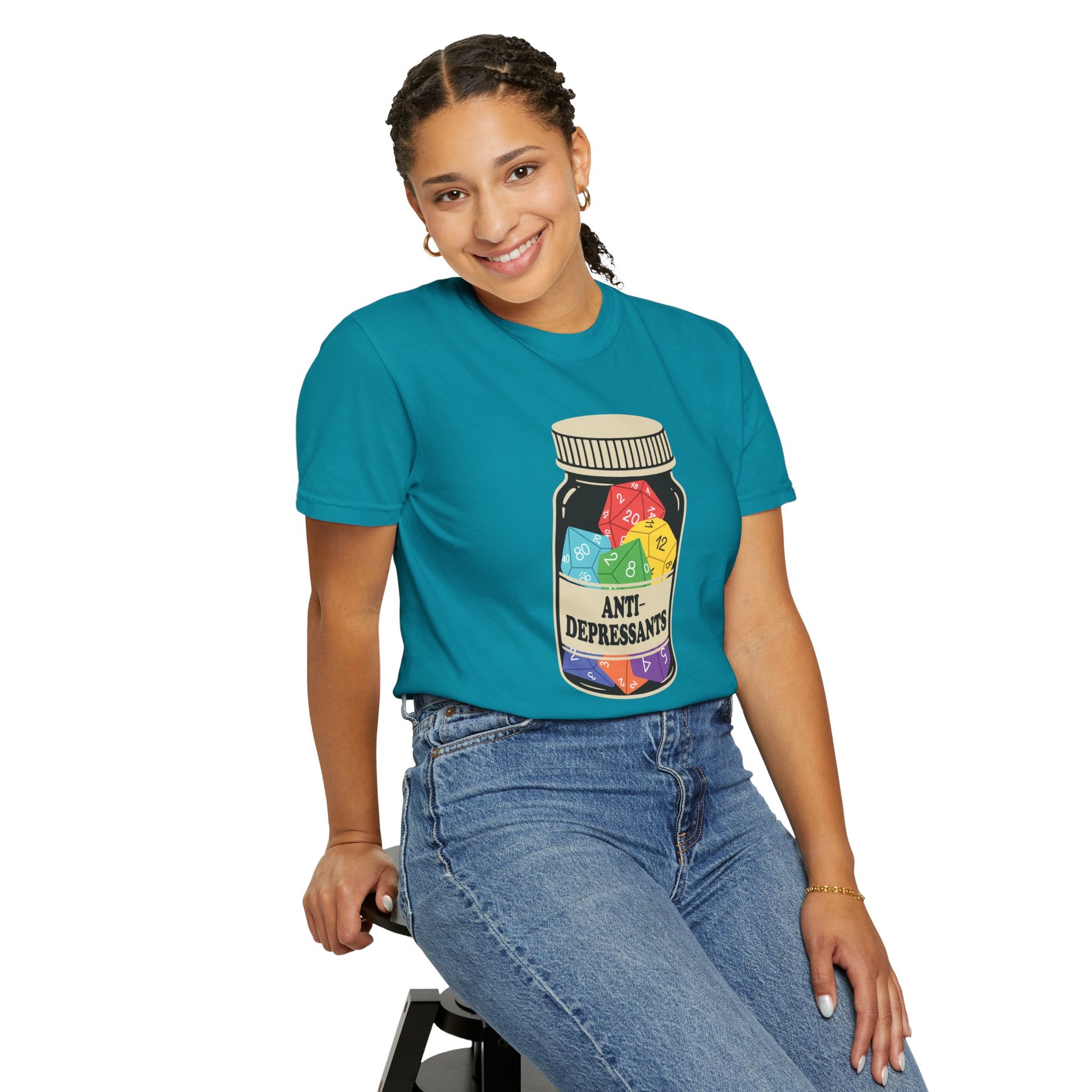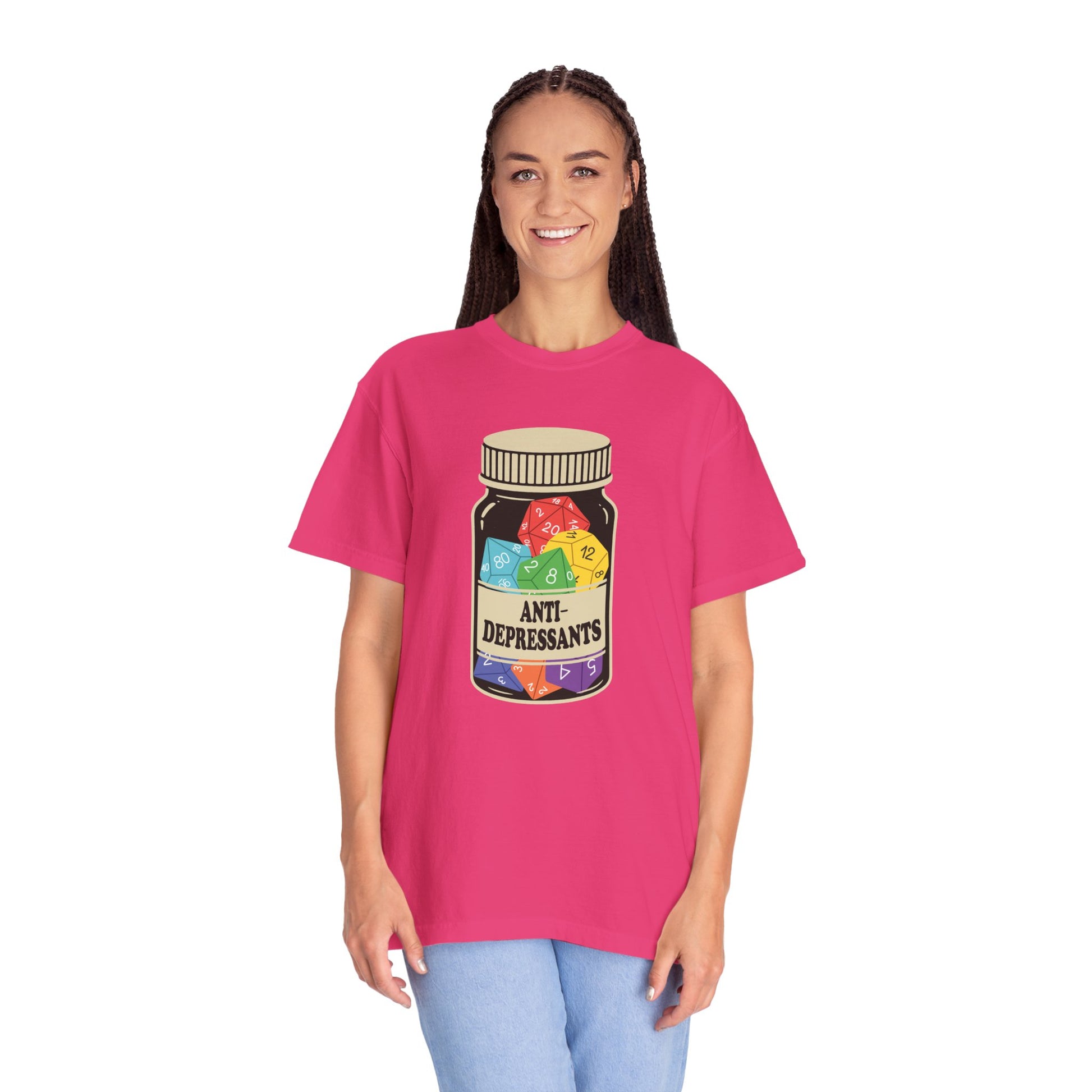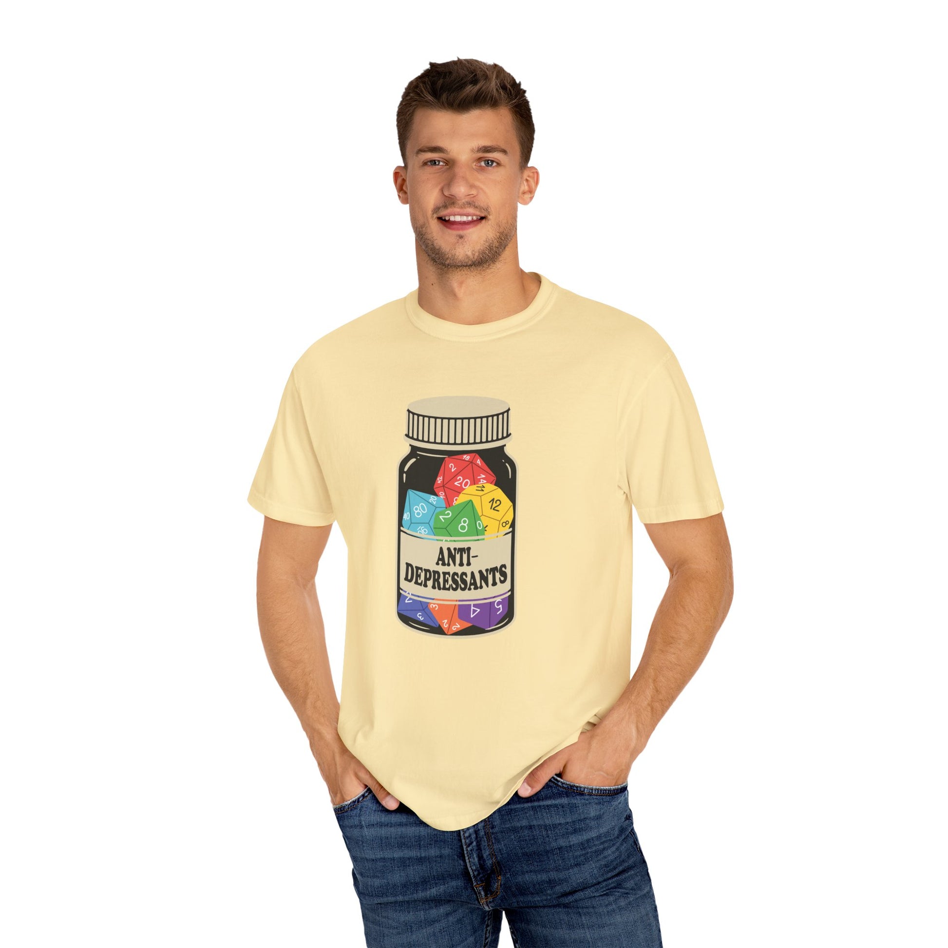 This Meme, Anti-Depressants, Dungeons and Dragons themed t-shirt is perfect for fans of DnD and dice. It gives off a fun and geeky vibe, making it a great addition to any casual outfit. Perfect for DnD enthusiasts and meme lovers alike, this shirt is ideal for wearing to game nights, conventions, or just lounging at home.