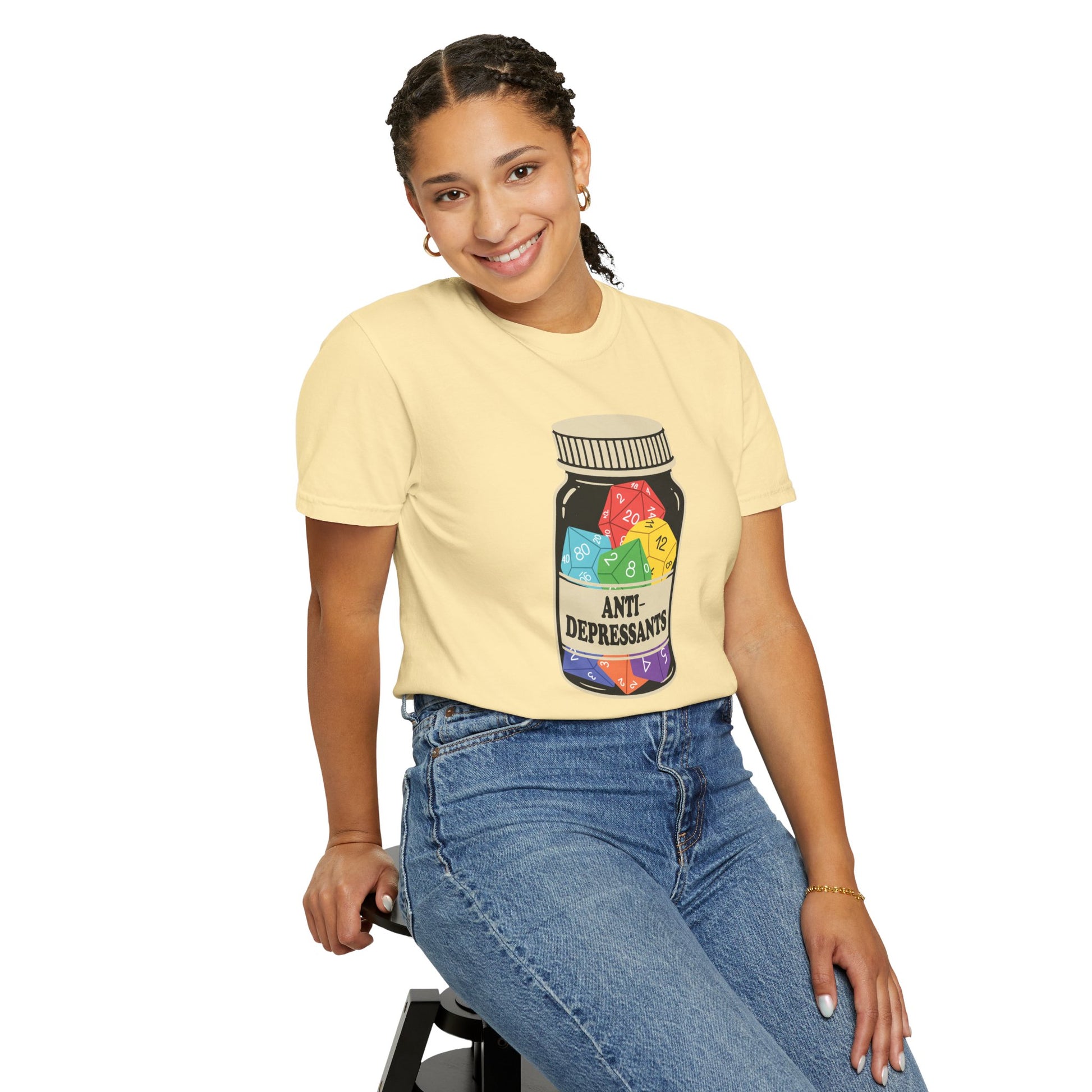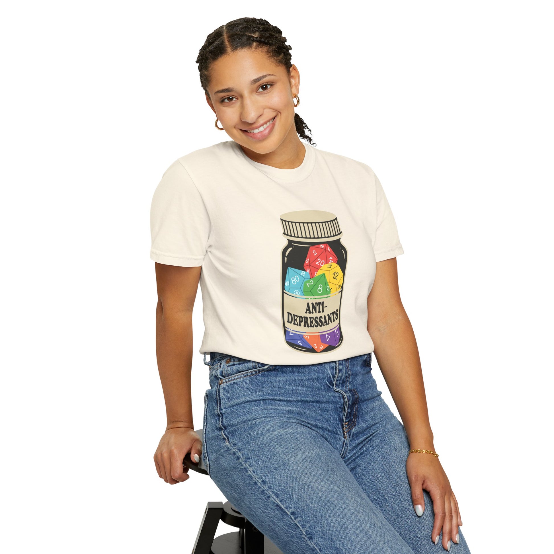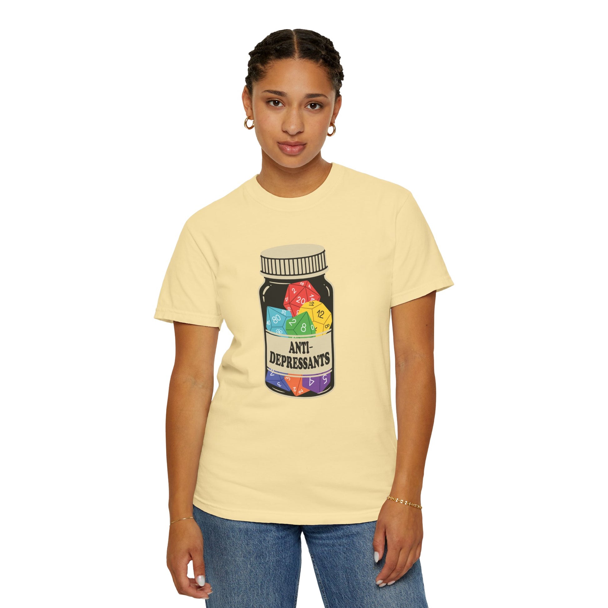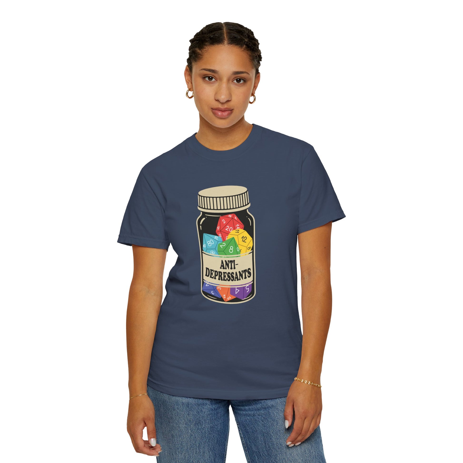 This Meme, Anti-Depressants, Dungeons and Dragons themed t-shirt is perfect for fans of DnD and dice. It gives off a fun and geeky vibe, making it a great addition to any casual outfit. Perfect for DnD enthusiasts and meme lovers alike, this shirt is ideal for wearing to game nights, conventions, or just lounging at home.