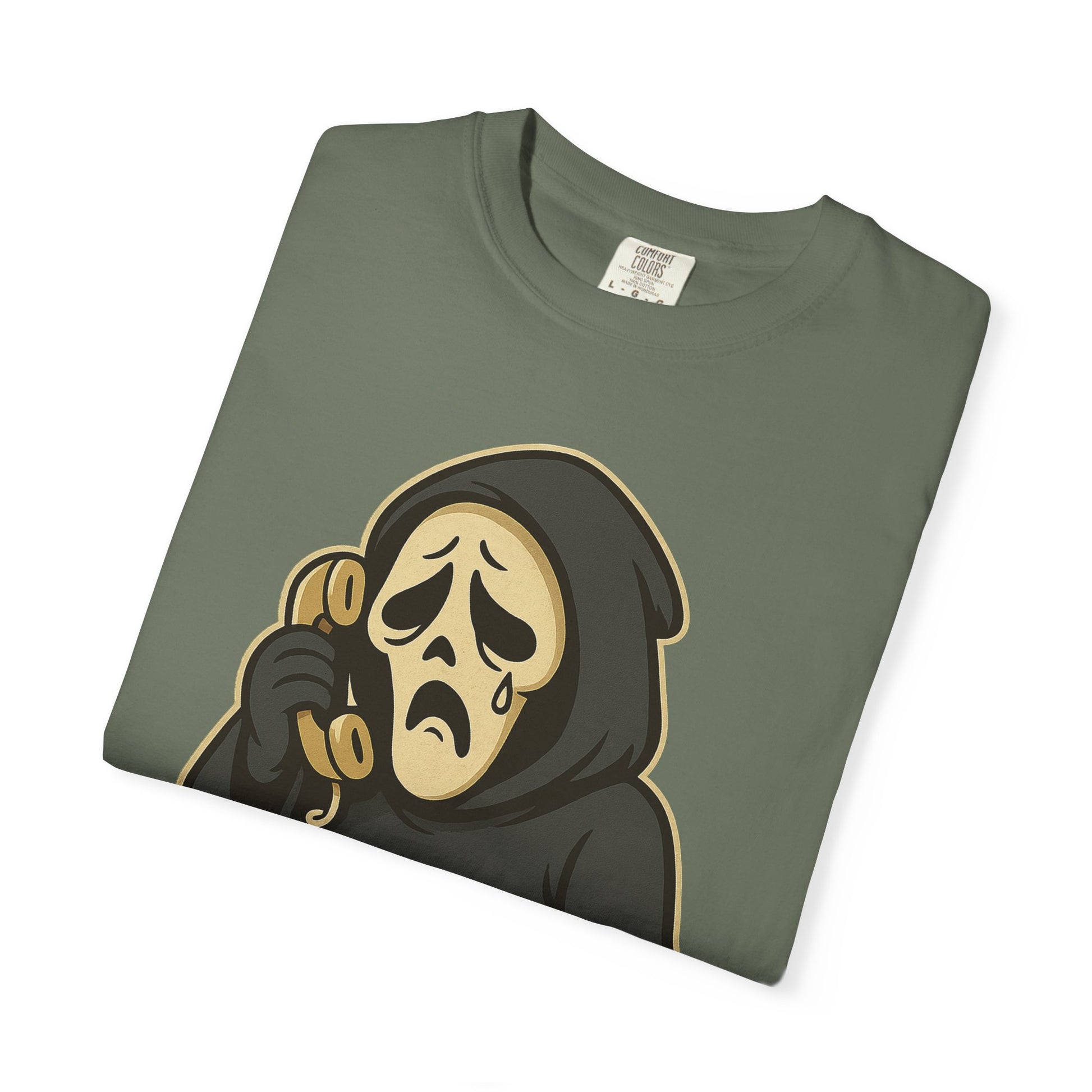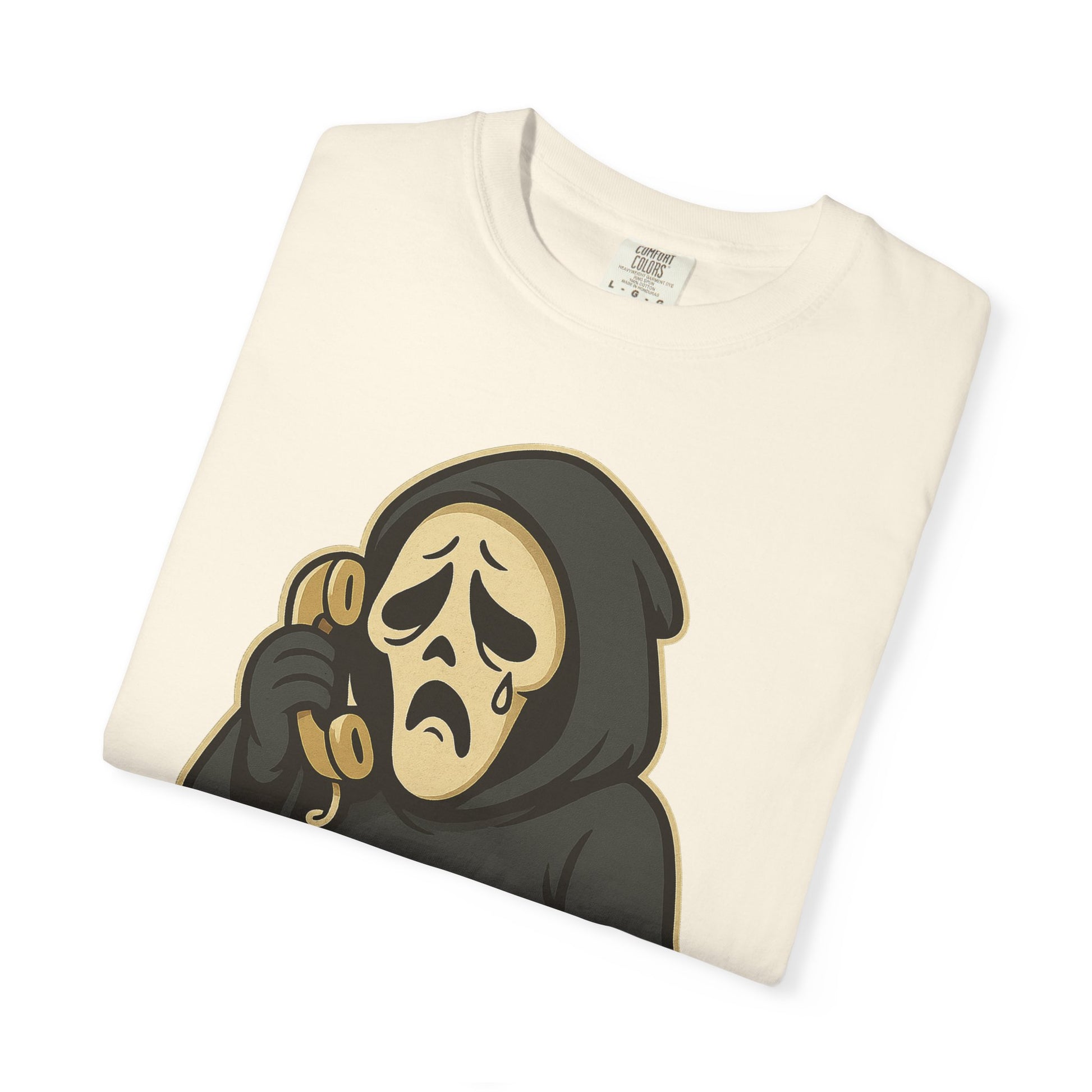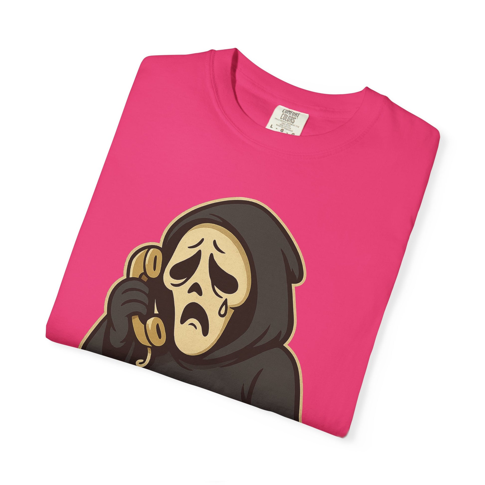 This Funny Scream movie Spoof T-shirt features a design of Ghost Face and Sad Ghost Face. It is perfect for fans of the movie looking for a humorous twist on the iconic image. The garment-dyed fabric and relaxed fit provide comfort and style, making it a great casual wear option. Ideal for movie enthusiasts and Halloween celebrations.